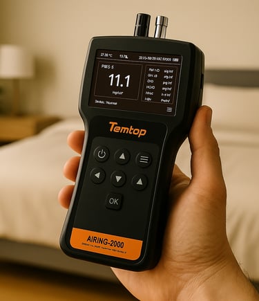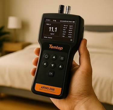 TVOCs are airborne chemicals released from paints, cleaning products, furniture, and synthetic materials. At elevated levels, they can irritate the eyes, lungs, and skin, and may contribute to fatigue or brain fog. Source control and ventilation are essential.